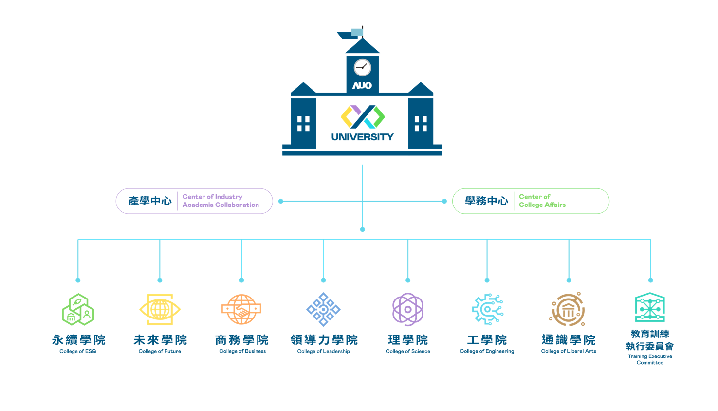 我們鼓勵每位友達人持續學習發展,友達大學依據專業核心能力發展與次世代人才培育需求,發展商務經營學院、永續學院 、未來學院、理學院、工學院、領導力學院與通識教育學院等七大學院,共同形塑組織內部教學相長的動能,並針對各學院的專業核心能力陸續推出優質課程,激發友達人發揮潛能,創造無限可能。